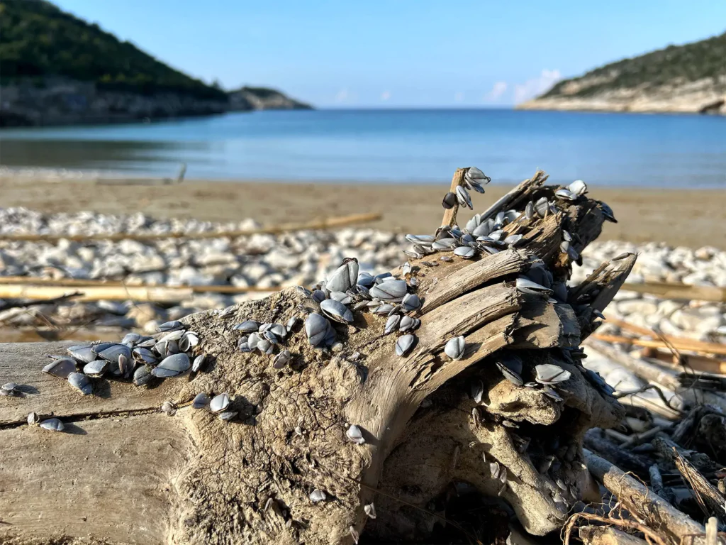 More je snažno, jako snažno, na svoje obale može izbaciti velike i teške komade. Ponekad se masivne grane ili dijelovi drveća pronađu nasukani na dugoj pješčanoj plaži uvale Porat. Grane koje se već dugo valjaju u moru imaju određenu sivkastu boju, blagu teksturu, nježnu ali obrađenu površinu, zanimljive oblike, a često i nove stanovnike.