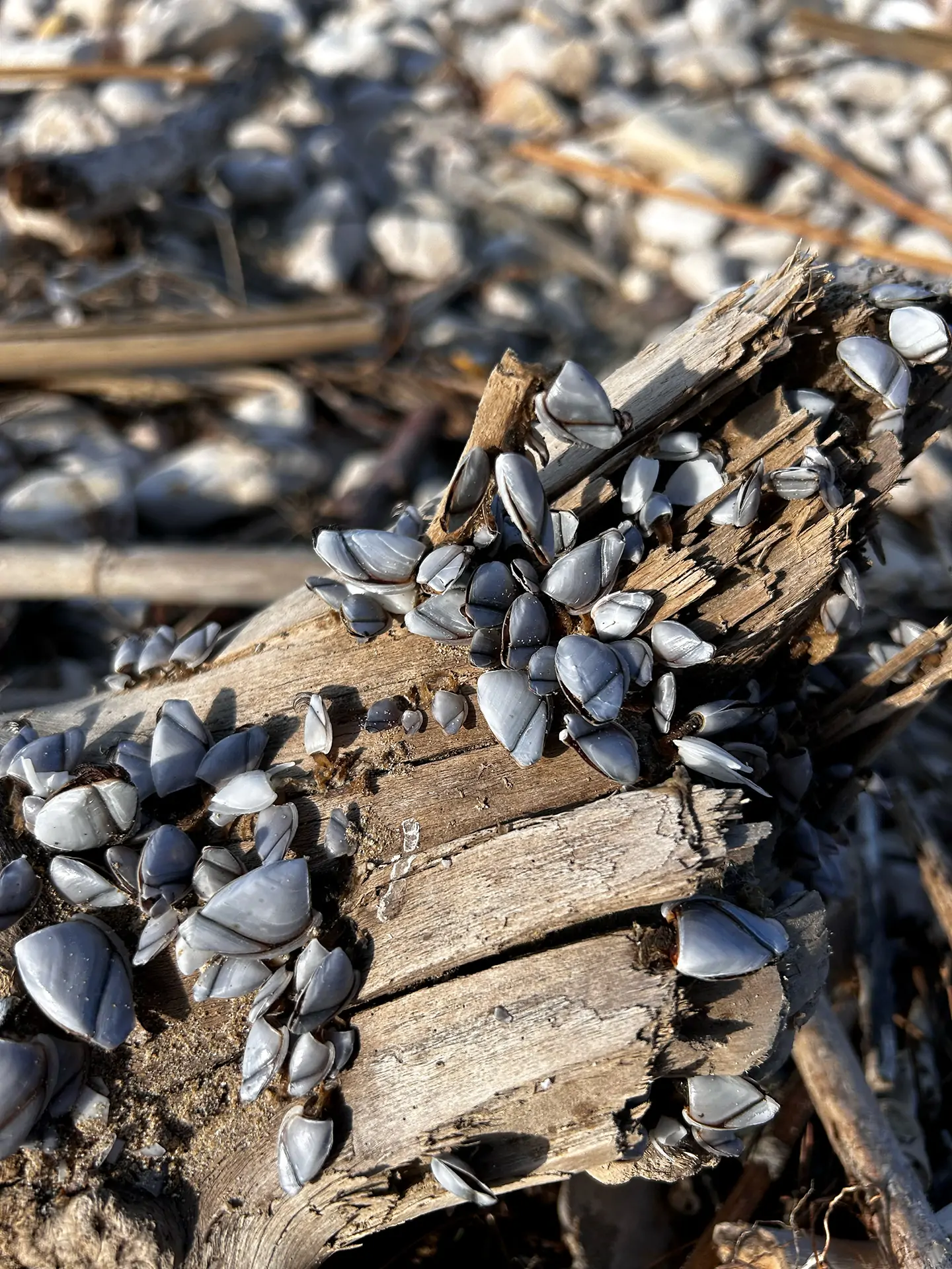 Ima ih mnogo no ova mi je zapela za oko jer je bila tako zasićena školjkicama. Naplavine su već teksturirane tokom svojeg života pod morem u kojem su se predale morskim silama i prilikama. Onda im se na tu površinsku teksturu nakite i ove male školjkice koje se rasipaju u svoje kolonije. Od naplavina kreativci stvaraju slike i kipove, jer more već pola posla odradi za njih i oni u tim oblicima pronalaze inspiraciju. Meni je ova, ovako posipana malim školjkicama umjetnina sama za sebe.