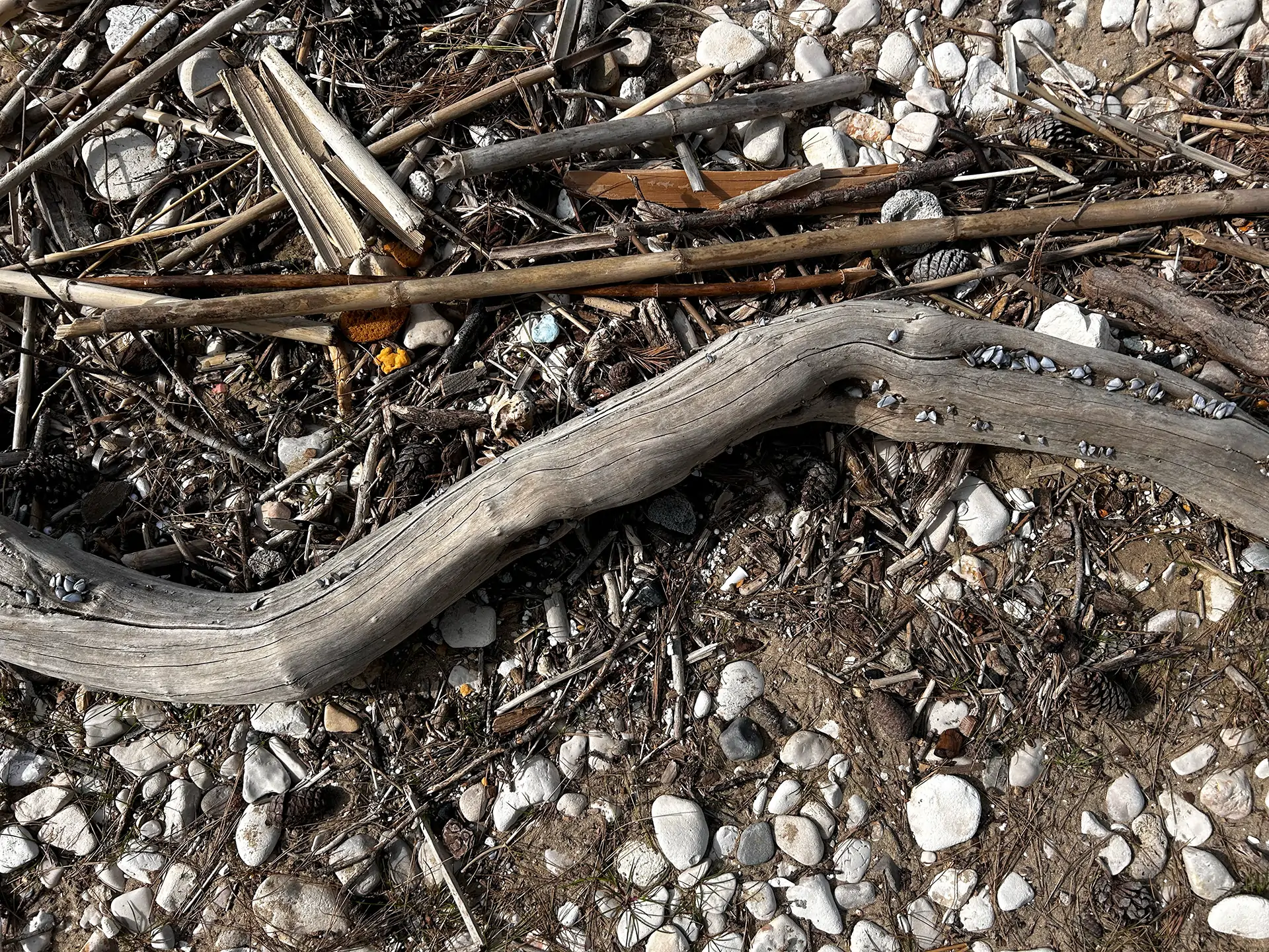 More je snažno, jako snažno, na svoje obale može izbaciti velike i teške komade. Ponekad se masivne grane ili dijelovi drveća pronađu nasukani na dugoj pješčanoj plaži uvale Porat. Grane koje se već dugo valjaju u moru imaju određenu sivkastu boju, blagu teksturu, nježnu ali obrađenu površinu, zanimljive oblike, a često i nove stanovnike.